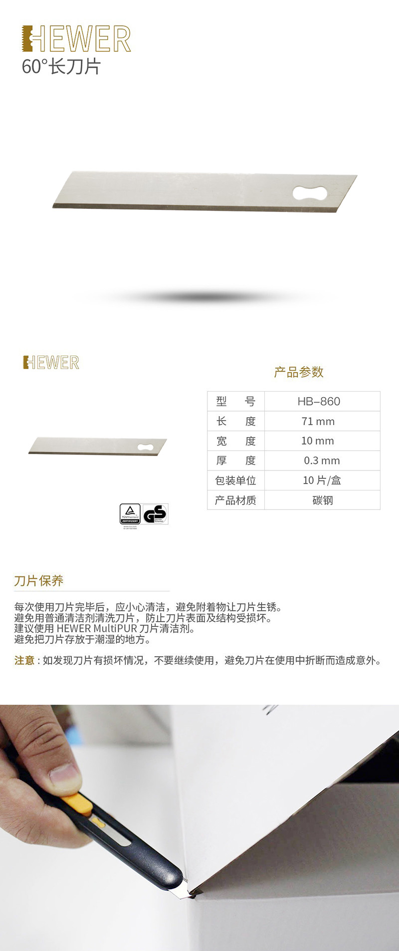 HEWER 工業(yè)碳鋼長刀片 HB-860