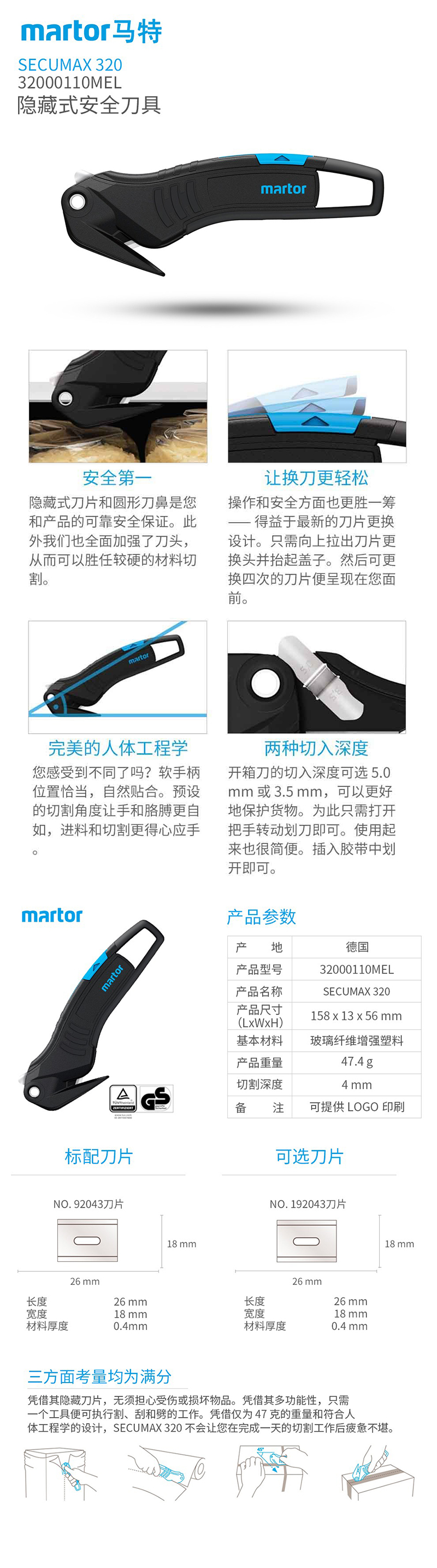 MARTOR馬特安全刀具32000110標(biāo)配92043隱藏刀片