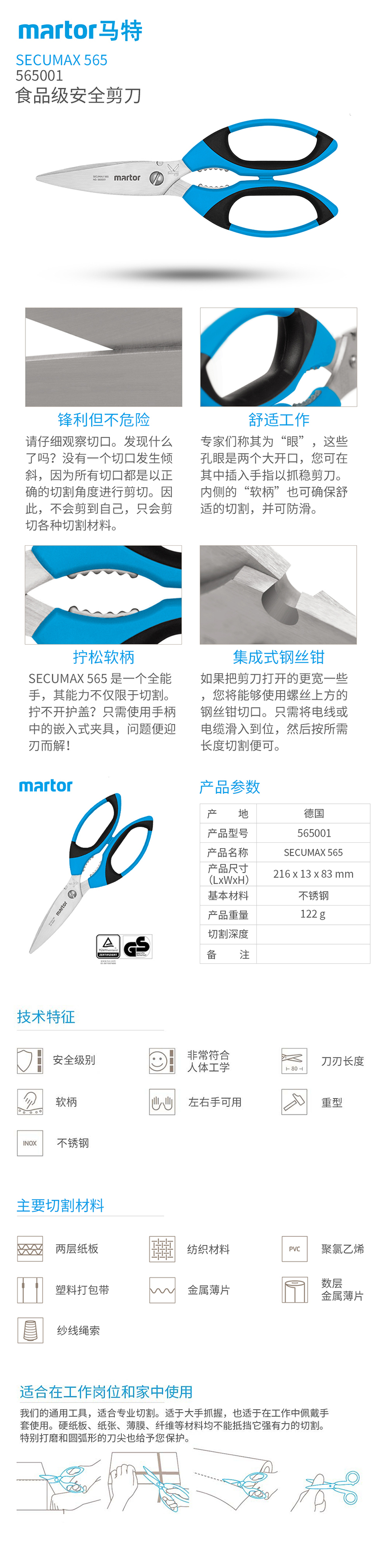 MARTOR馬特不銹鋼不傷手安全剪刀565001