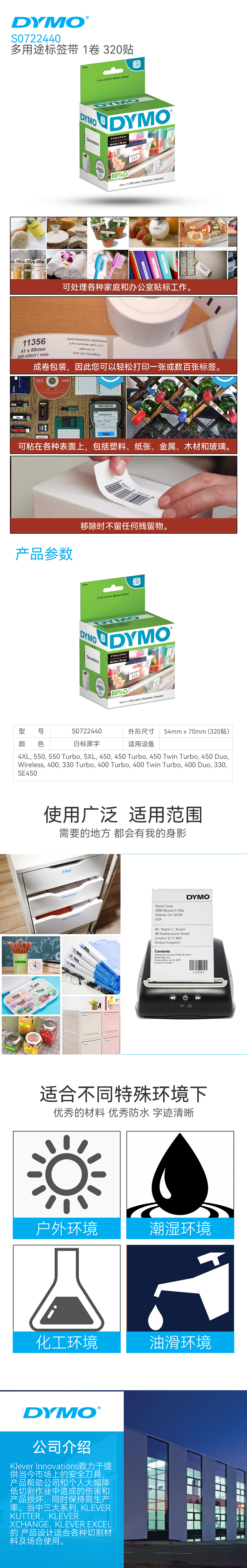 DYMO達美多用途標簽熱敏打印紙質(zhì)標簽帶S0722540